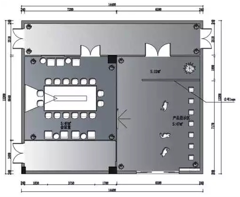 這一次烯灣科技有限公司特意邀請了尚泰裝飾集團為他們設(shè)計新的展廳和會議室設(shè)計師經(jīng)過溝通后,得出了以下的設(shè)計思路:
