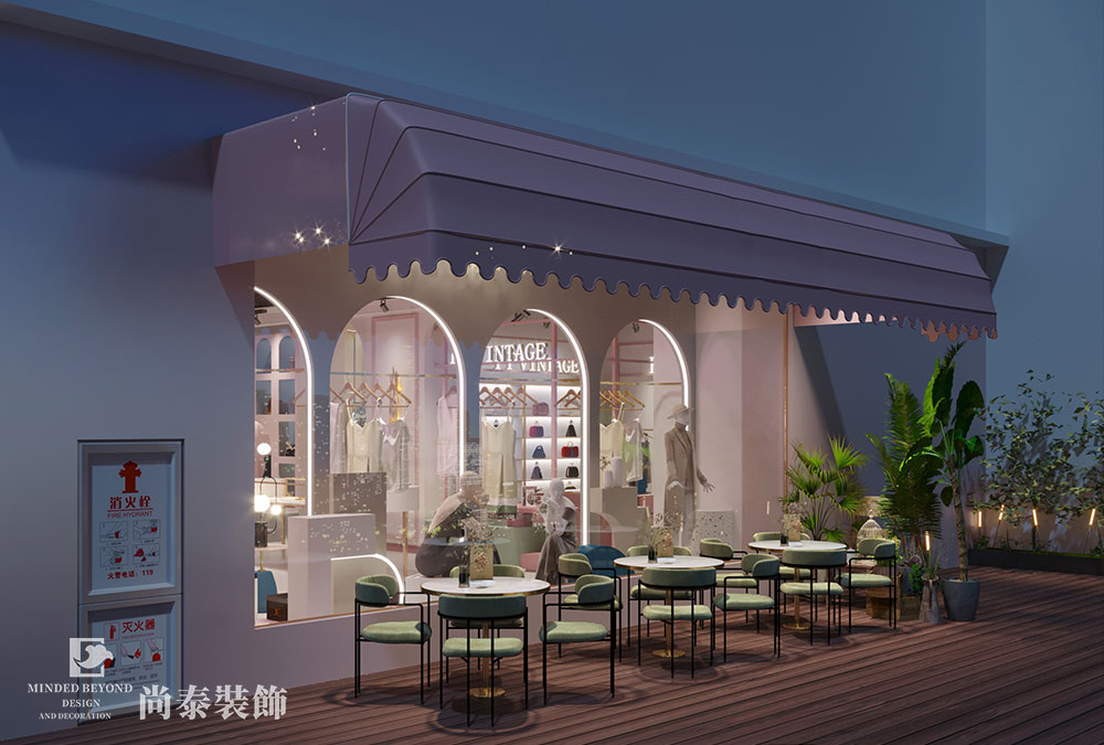 本案空間布局合理,室內含成品展示、精品展示、飾品展示、咖啡吧、VIP接待室等功能區(qū)劃,同時室外精心設計了休閑區(qū),把店面節(jié)奏放慢,給顧客充分的欣賞和休閑時間,提升店面休閑和消費價值。